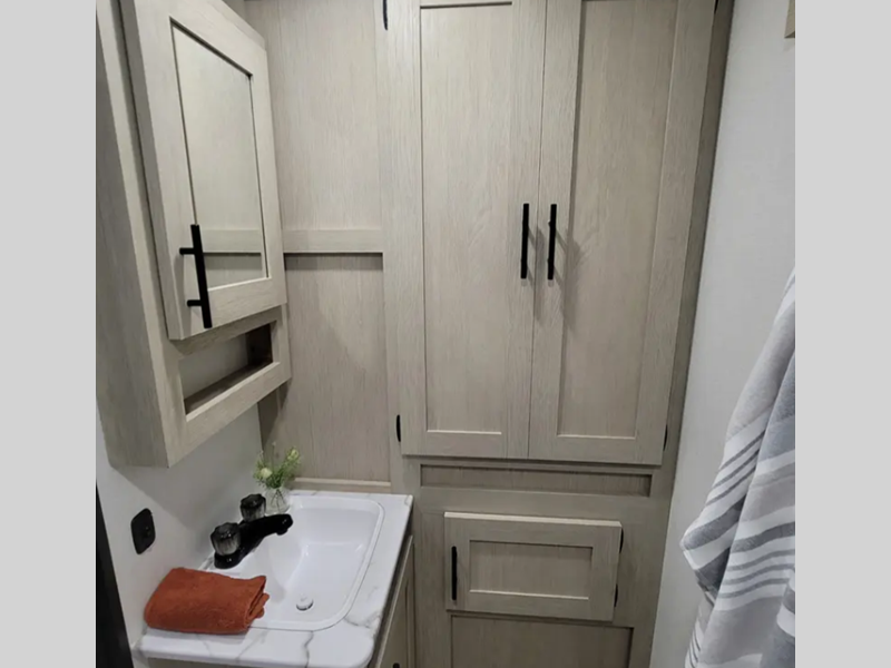 Each model includes four stabilizer jacks that will help secure your unit once you've made to the campground, and you might even want to add the optional power tongue jack in place of the manual jack for even more convenience. Inside, the seamless countertops will be easy to keep clean and the Bluetooth portable speaker will let you take your tunes with you!