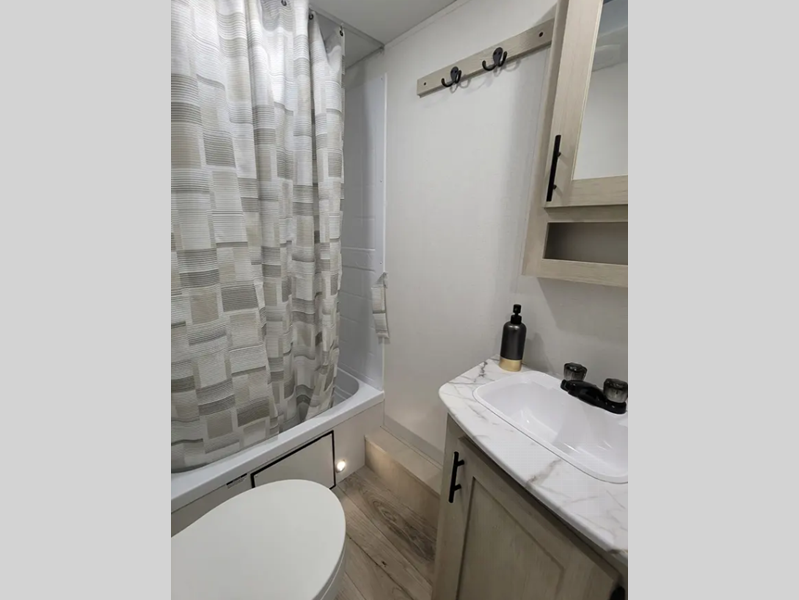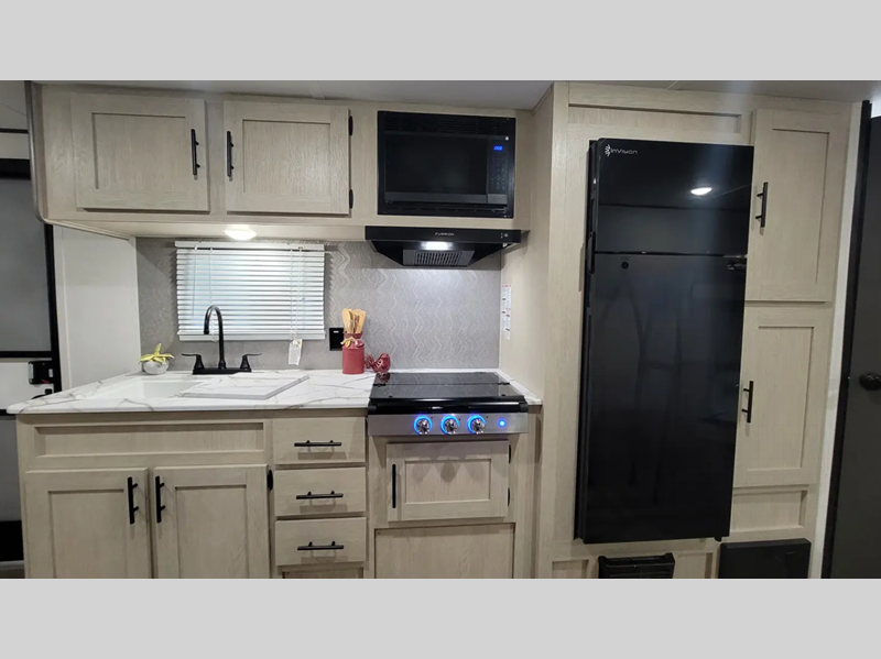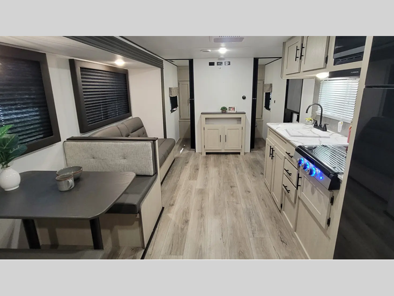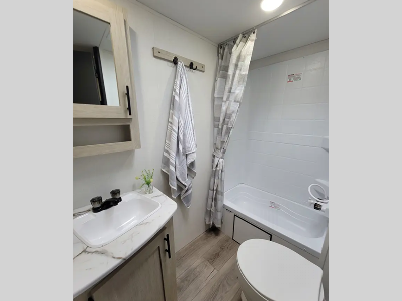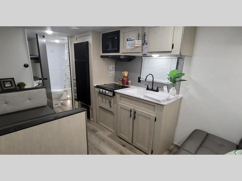 Sleeps 3 Slides 1 Length 28 ft 11 in Ext Width 8 ft Ext Height 11 ft 3 in Hitch Weight 647 lbs GVWR 7547 lbs Dry Weight 5214 lbs Cargo Capacity 2333 lbs Fresh Water Capacity 39 gals Grey Water Capacity 30 gals Black Water Capacity 30 gals Available Beds RV Queen Refrigerator Type Residential Style Refrigerator Size 8 cu ft Cooktop Burners 3 Shower Size 24" x 40" Number of Awnings 1 LP Tank Capacity 20 lbs. Water Heater Type Tankless AC BTU 13500 btu Axle Count 2 Washer/Dryer Available Yes Number of LP Tanks 1 Shower Type Tub/Shower Combo Similar Floorplans